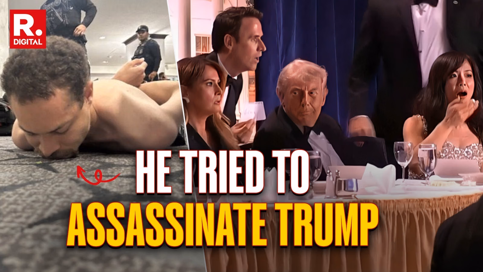 He attempted to charge into the cavernous ballroom at the Washington Hilton but was tackled to the ground in a violent scene that resulted in shots being fired, Mr Trump being hurried off the stage and guests ducking for cover beneath their tables.