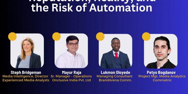 The event will bring together a distinguished panel of global experts in media intelligence and communications, including: Steph Bridgeman, Media Intelligence Director, Experienced Media Analysts; Mayur Raja, Senior Manager, Operations, Onclusive India; Lukmon Oloyede, Managing Consultant, BrandArena Communications; Petyo Bogdanov, Project Manager, Media Analytics, Commetric.