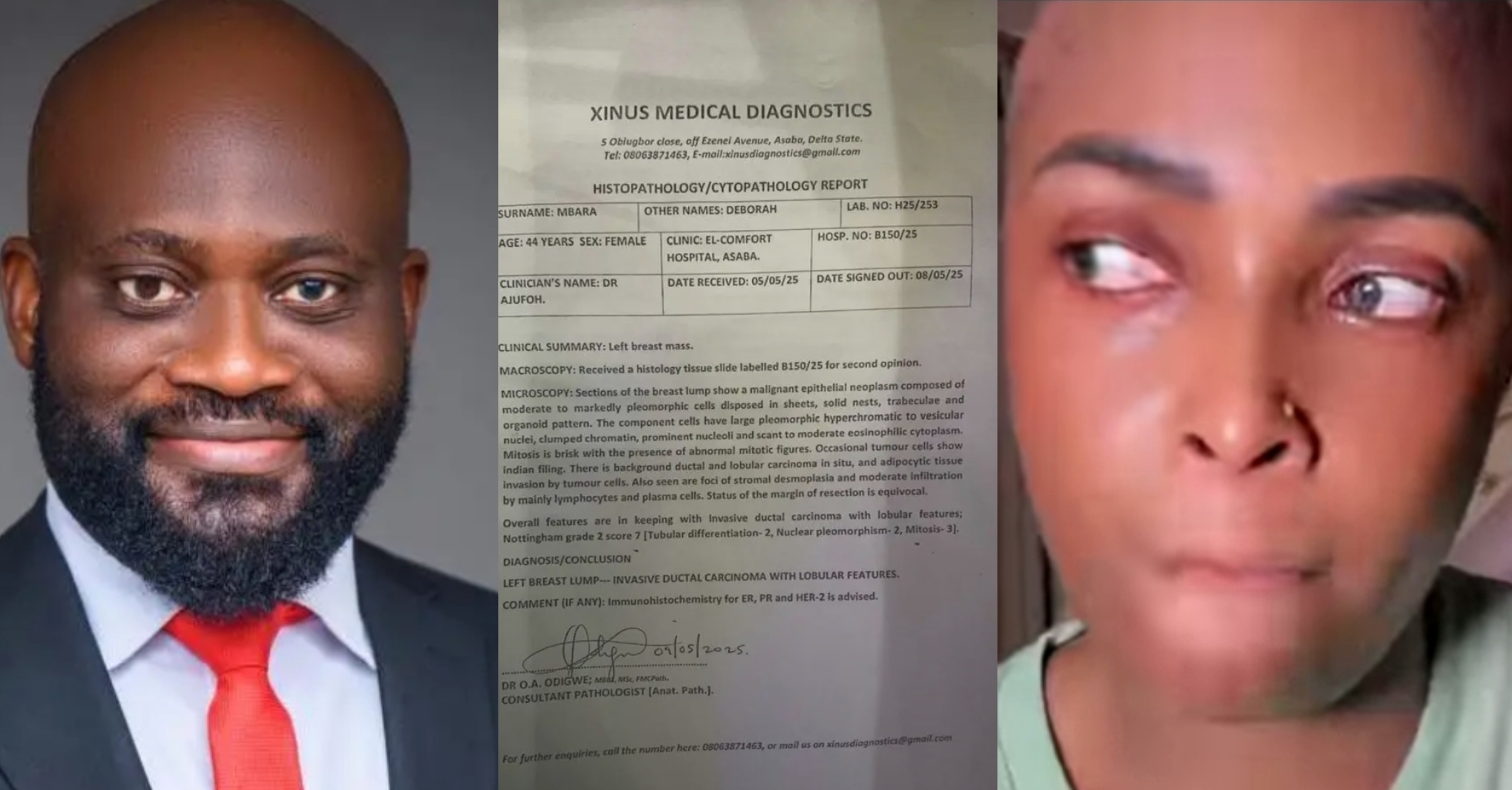 In a viral Facebook post, Duke Chidi Nwafor released the original and altered cancer medical report as evidence.