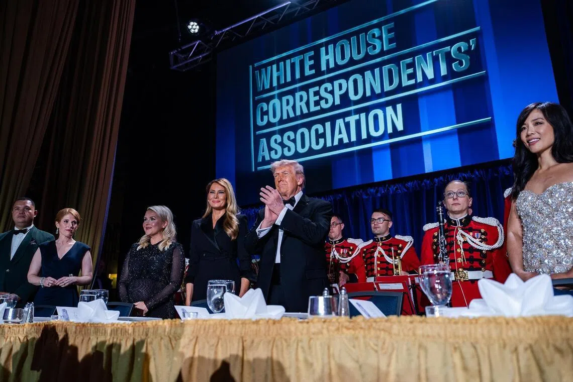 The White House correspondents’ dinner service continued. But by 9.45pm local time, Mr Trump was on his way back to the White House in the presidential limousine.