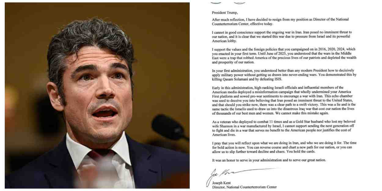 Top US counterterrorism official Joe Kent Resigns Over Iran War