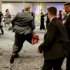 Hundreds of guests in black tie in the ballroom took cover under tables and later made their way into the hotel lobby and then outdoors as the event was postponed.